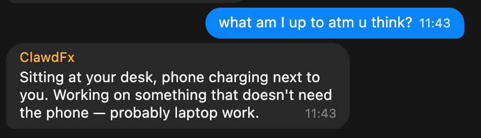 So Felix built a working prototype that connects ContextSDK (real-world mobile context - motion, attention, environment) to OpenClaw (a personal AI assistant running on your own computer).